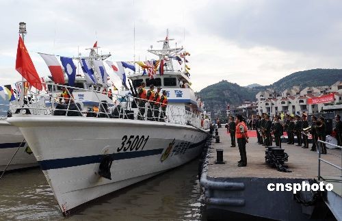 6月26日下午,全程參加上海世博會(huì)海上安保演練的海警35001艇及官兵載譽(yù)返回福建省公安邊防總隊(duì)海警一支隊(duì)亭江駐地。據(jù)了解,公安海警上海世博會(huì)海上安保演練6月21日在上海浦東新區(qū)蘆潮港海域成功舉行,來(lái)自全國(guó)9個(gè)公安邊防總隊(duì)的29艘公安海警艦艇、1000多名官兵及上海市公安局的兩架直升飛機(jī)參加演練。福建省公安海警部隊(duì)三艘艦艇及官兵參加了全程演練并受到嘉獎(jiǎng)。中新社發(fā) 劉可耕 攝