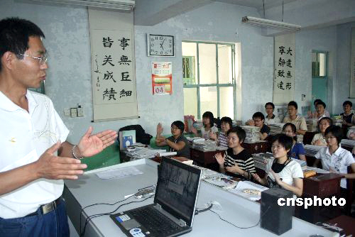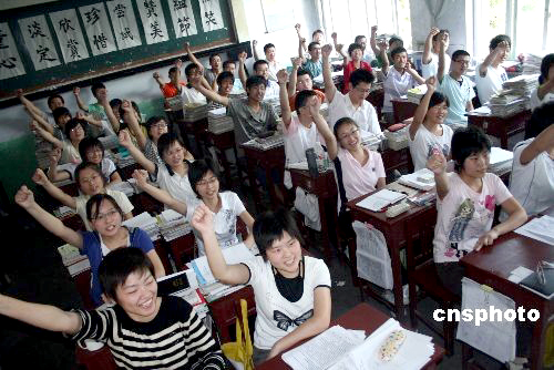 6月3日,在高三的同學(xué)們?cè)谝黄鹱觥靶睦泶驓庥螒颉,增?qiáng)自信心。隨著今年高考的臨近,為緩解考生壓力,山東博興縣第一中學(xué)通過(guò)開(kāi)展心理輔導(dǎo)、組織做減壓游戲、開(kāi)設(shè)減壓課等方式,減輕考生應(yīng)考?jí)毫Γ尫趴忌o張心情,幫助他們?cè)鰪?qiáng)自信心,以輕松樂(lè)觀的心態(tài)迎接高考。中新社發(fā) 陳彬 攝