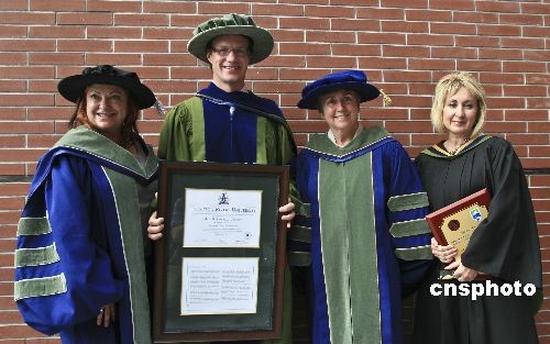 六月二十六日,中國最知名的加拿大人大山先生在天津出席“天津理工大學(xué)和湯姆遜大學(xué)學(xué)士畢業(yè)典禮”,并榮獲由湯姆遜大學(xué)頒發(fā)的榮譽博士學(xué)位。這一榮譽學(xué)位肯定了大山先生通過國際教育形式為建立全球文化與經(jīng)濟的接軌所作出的貢獻。湯姆遜大學(xué)(TRU)與天津理工大學(xué)合作的工商管理學(xué)士學(xué)位項目始于2002年。到目前為止,已有558名中國學(xué)生獲得了中加這兩所大學(xué)同時頒發(fā)的工商管理學(xué)士學(xué)位,這兩所大學(xué)在商科教育領(lǐng)域的成功合作,已經(jīng)成為中加合作辦學(xué)的典范。中新社發(fā) 王磊 攝