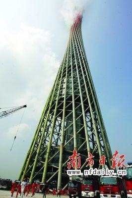 昨日(12日)上午9時30分,消防警報響徹珠江兩岸,30臺消防車呼嘯著駛向廣州新地標——高達610米的廣州新電視塔。世界最高電視塔“失火”,上千工人緊急疏散,數(shù)十人被困火場。今年5月12日是全國首個“防災減災日”,為檢驗超高層建筑火災應急處置和省城消防滅火救援能力,省減災委員會辦公室、省公安廳于當日上午在廣州新電視塔舉行超高層建筑滅火救援演習。
