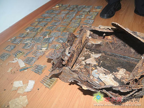 21日下午3時(shí)許,平房區(qū)(哈爾濱)平房鎮(zhèn)工農(nóng)村一位農(nóng)民在大地里發(fā)現(xiàn)了一個(gè)裝滿子彈的鐵箱子,他隨即報(bào)警。接到報(bào)警后,平房公安分局治安大隊(duì)趕到現(xiàn)場(chǎng),經(jīng)查點(diǎn),箱子里面共有300多發(fā)銹跡斑斑的子彈。由于包裝子彈的紙上寫有日文,警方推測(cè),子彈應(yīng)該是日偽時(shí)期留下的機(jī)槍子彈。據(jù)悉,這些子彈將被警方帶回分局等待統(tǒng)一銷毀。(陳南)
