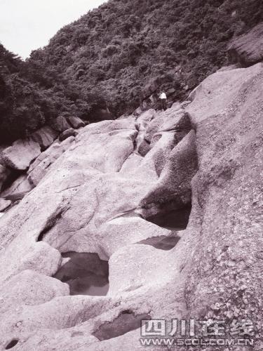 專家推測,冰川運動在這里形成了一個很大的冰床,冰水滴水穿石,形成一個個圓圓的冰臼!(張發(fā)政 高志農(nóng))