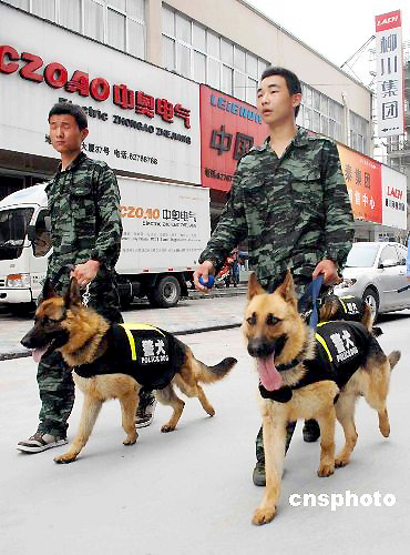 近日,浙江溫州市樂(lè)清公安局首次將警犬投入到社會(huì)治安管理中。首批4條警犬分為兩組:一組負(fù)責(zé)樂(lè)清柳市車(chē)站周邊的巡邏,另一組配合警方設(shè)卡和對(duì)可疑人員的追蹤、圍堵。2009年4月份,樂(lè)清警方專門(mén)成立了警犬基地,由保安公司負(fù)責(zé)飼養(yǎng)與日常管理。目前,警犬基地已從南京軍區(qū)購(gòu)買(mǎi)20只警犬,每只身價(jià)都在萬(wàn)元以上,多為體型強(qiáng)壯勻稱、勇敢無(wú)畏的德國(guó)牧羊犬。據(jù)介紹,這20只護(hù)衛(wèi)犬主要用于溫州樂(lè)清的警戒、巡邏等,其中4只首批受訓(xùn)成功投入使用。中新社發(fā) 許勛磊 攝