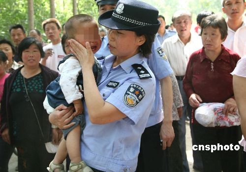 6月1日,山東菏澤市“5.18”搶奪、拐賣兒童案成功告破,李某等5名犯罪嫌疑人全部落網(wǎng)。據(jù)悉,2009年5月18日,許某剛滿周歲的兒子跟姥姥在村頭玩耍時(shí)被2名歹徒搶走,后又以4萬元的價(jià)格出賣。菏澤市公安局牡丹分局刑警連續(xù)奮戰(zhàn)13個(gè)晝夜,終將犯罪嫌疑人抓獲,將幼兒平安解救出來,小偉偉重返父母懷抱。中新社發(fā) 劉心中 攝