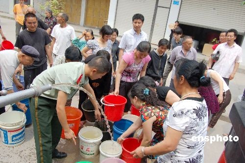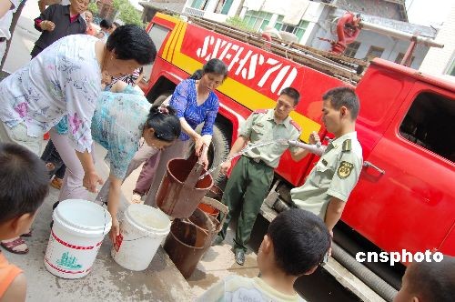 6月7日,3車生活用水運(yùn)送到四川南部縣大王鎮(zhèn),以解決2000多人的用水困難。今年5月以來,降雨強(qiáng)度小,四川南部縣降雨總量比往年同期偏少,部分河段水位下降,夏旱入侵南部,72個(gè)鄉(xiāng)鎮(zhèn)的部分稻田出現(xiàn)干涸開裂現(xiàn)象。目前,南部縣正采取措施,減少夏旱對農(nóng)業(yè)造成的損害。中新社發(fā) 張櫪 攝