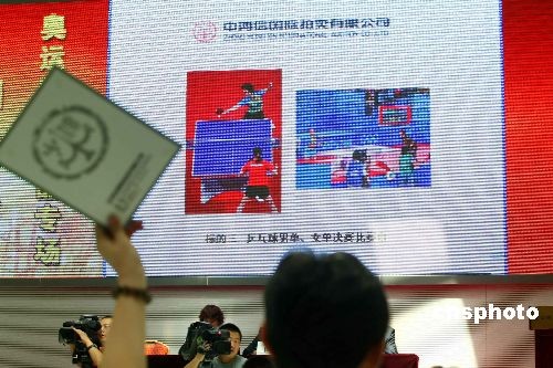 6月30日,北京奧運會專用物資拍賣會迎來“謝幕秀”,北京奧組委處置奧運物資的最后一拍當日舉行,乒乓球決賽用祥云比賽臺、主席臺座椅、茶幾等130多件奧運物資屆時公開拍賣。 此次拍賣的奧運特殊物品主要包括主席臺茶幾及座椅、國際貴賓廳專用沙發(fā)、鳥巢私人餐臺、乒乓球決賽用祥云比賽臺等,其中包括30余件奧運會前專為國家領(lǐng)導(dǎo)人及各國元首設(shè)計的絕版沙發(fā)及座椅,每個版本僅此一件。中新社發(fā) 富田 攝