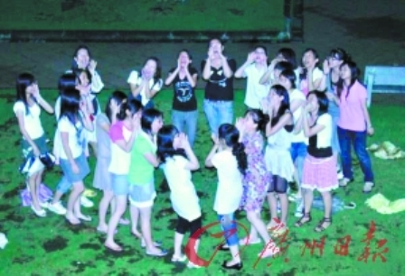 6月26日晚11時(shí),華師05級(jí)經(jīng)濟(jì)學(xué)專(zhuān)業(yè)的20多位女同學(xué)來(lái)到該班男生所在的3棟宿舍樓下,她們大方地喊出“05級(jí)經(jīng)濟(jì)學(xué)男生,我們愛(ài)你!”,深情演唱《月亮代表我的心》。
