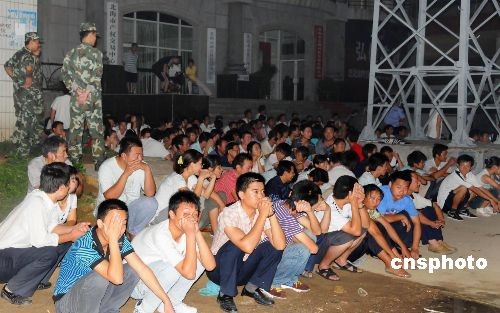 7月11日凌晨4時(shí)20分,廣西北海市再次展開(kāi)打擊非法傳銷集中清查行動(dòng),截止當(dāng)天中午12時(shí),執(zhí)法部門(mén)共清查非法傳銷聚集場(chǎng)所57個(gè),抓獲涉嫌非法傳銷人員840余人。其中100余人被帶回進(jìn)行審查,刑拘5人,行政拘留3人,其余涉嫌非法傳銷人員均作遣返原籍處理。此外,執(zhí)法部門(mén)還暫扣12萬(wàn)元涉案人民幣、3輛汽車、7臺(tái)電腦及一批非法傳銷資料。目前,北海警方正對(duì)相關(guān)人員進(jìn)行審查,對(duì)涉嫌違法犯罪人員將依法處理。中新社發(fā) 蘇程遠(yuǎn) 攝