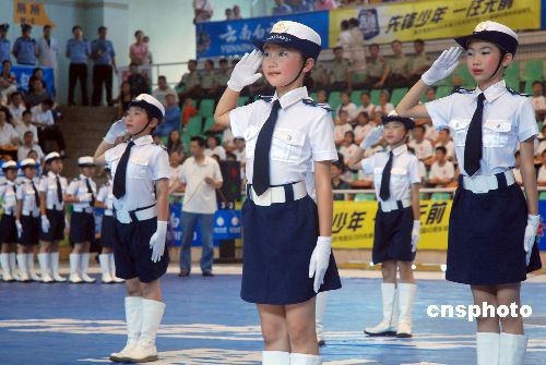7月13日,“少年交警”在2009重慶市少年交警大會(huì)操活動(dòng)上表演交警手勢(shì)信號(hào)操。少年交警大會(huì)操活動(dòng)旨在通過(guò)比賽充分展示“少年交警”的風(fēng)采,讓中小學(xué)生學(xué)習(xí)交通安全法律法規(guī)知識(shí)和安全出行常識(shí),保障中小學(xué)生出行安全。中新社發(fā) 謝捷 攝