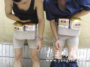 14日下午3點半左右,兩名男子在南京建寧路一家超市里偷了4聽奶粉藏在內(nèi)褲里準備偷運出超市。在超市門口被保安發(fā)現(xiàn)后,兩人四處逃竄,其中一人跑到奶粉貨架處,脫了褲子就把奶粉放回貨架上,但還是被保安和熱心的市民抓住。令人啼笑皆非的是,偷奶粉的兩名男子竟然各穿了三條女性緊身內(nèi)褲方便作案。