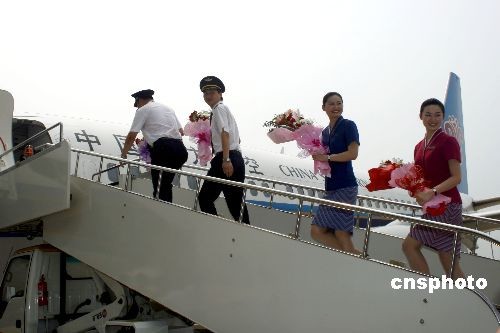 7月15日,一架中國(guó)南方航空公司嶄新的波音737—300客機(jī)滿載125名旅客,從武漢天河機(jī)場(chǎng)騰空而起,目的地臺(tái)北桃園機(jī)場(chǎng)。此次開通臺(tái)灣直航包機(jī)是中國(guó)南方航空公司開啟漢臺(tái)直航常態(tài)化的首航。此次航班的旅客中61%是武漢市及周邊地區(qū)的大陸居民赴臺(tái)觀光的旅游團(tuán)隊(duì),另外的39%是散客,主要以公商務(wù)和探親旅客居多,也有部分是返臺(tái)的臺(tái)胞。中新社發(fā) 湖北分社 攝