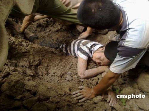 7月15日16時(shí)左右,福建省寧德市壽寧縣環(huán)城路舊線毯廠旁山體滑坡,造成一婦女被埋,生死未卜。壽寧縣消防大隊(duì)接警后,迅速出動(dòng)1部指揮車、2臺(tái)消防車14名官兵奔赴現(xiàn)場緊急施救,成功將被埋人員救出。據(jù)事后了解,事故發(fā)生時(shí)被埋婦女在山體下幫忙搬運(yùn)建屋土石時(shí)山體發(fā)生了坍塌。中新社發(fā) 陳強(qiáng) 攝