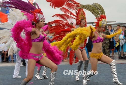 2009年7月18日,以“盛世中華,歡樂沙!睘橹黝}的2009大連國際沙灘文化節(jié)在金石灘黃金海岸隆重開幕。在為期一個(gè)月的時(shí)間內(nèi),將舉辦沙灘群眾體育系列活動(dòng)、市民沙雕大賽、“快樂一家”家庭海灘趣味賽、沙灘節(jié)攝影大賽、沙灘文化節(jié)金石小姐大賽、沙灘節(jié)寶貝評(píng)選、首屆金石灘海泥狂歡節(jié)、大連發(fā)現(xiàn)王國夏日狂歡節(jié)等十項(xiàng)活動(dòng)。中新社發(fā) 王錫增 攝