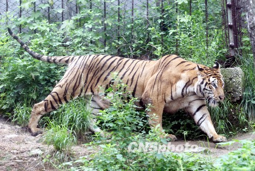 7月20日,在濟(jì)南野生動(dòng)物世界,剛出生2個(gè)月的四胞胎小老虎首次走出產(chǎn)房與游客見面。據(jù)了解,該景區(qū)飼養(yǎng)的孟加拉虎“虎妞”于5月10日產(chǎn)下四胞胎,其中兩只是金虎,一只雪虎,一只孟加拉虎,專家介紹,一胎產(chǎn)下3個(gè)品種的虎崽,在國內(nèi)還是首次出現(xiàn)。另據(jù)了解,虎有3種基因的顏色,黑色、黃色和白色,其中黑色與黃色是顯性基因,白色為隱性基因,當(dāng)黃色基因不能表達(dá)時(shí),被白色基因掩蓋,就生出白虎,黑色與黃色基因都沒有表達(dá)時(shí),白色基因就成為顯性基因,就生出雪虎,當(dāng)白色與黑色基因變成隱性基因時(shí),就會(huì)生出金黃色的虎,也稱為“金虎”。中新社發(fā) 龔輝 攝