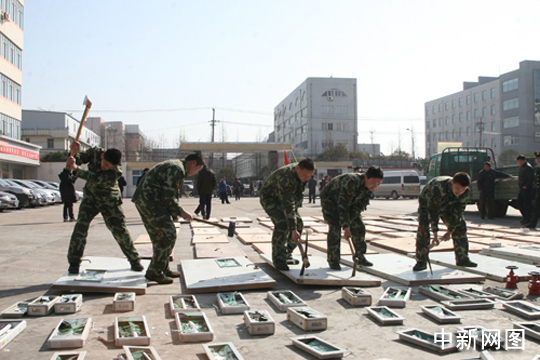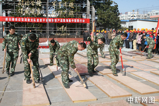 中新網(wǎng)連云港3月10日電 (蘇欣 吳茂新 朱曉穎)10日上午,在連云港市消防支隊營區(qū)院內(nèi),由消防部門聯(lián)合工商、質(zhì)監(jiān)共同查獲的不合格滅火器、消火栓、消防應(yīng)急照明燈等520余件消防假冒偽劣產(chǎn)品被集中銷毀。