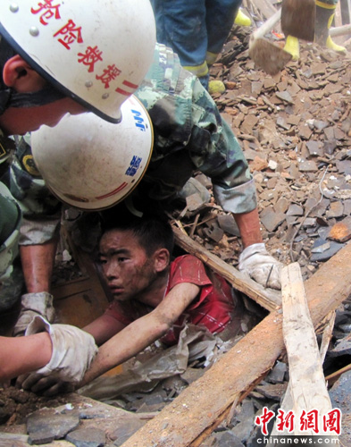 半個多小時的時間過去了,消防官兵的雙手磨破了皮、沙土進入了雙眼,可想到廢墟下被埋壓群眾依舊未脫離危險,官兵們沒有一人喊苦叫累,沒有停下喘口氣,與時間賽跑,與時間爭奪生命,將廢墟上的土塊、斷木、碎瓦慢慢清理開。