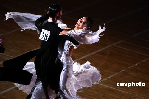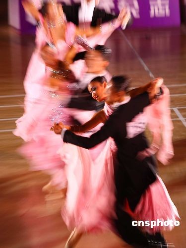 6月21日晚,作為北京市首屆體育大會(huì)的開場(chǎng)賽事,2009“貝蒂杯”北京體育舞蹈公開賽在北京地壇體育館舉行,共有來(lái)自包括北京市舞蹈院校在內(nèi)的幾十對(duì)選手激烈角逐,亞洲室內(nèi)運(yùn)動(dòng)會(huì)標(biāo)準(zhǔn)舞冠軍沈宏梁、瑜潔,體育舞蹈國(guó)家隊(duì)選手趙耀、陳貝等均在此次賽事中有精彩表現(xiàn)。中新社發(fā) 富田 攝