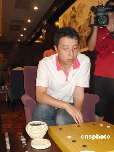 7月9日,古力正在參加中國圍甲第十輪的比賽。當(dāng)日,2009年中國圍棋甲級聯(lián)賽第10輪比賽在南昌開戰(zhàn),三冠王上海隊(duì)將主場移師江西南昌,與傳統(tǒng)勁敵衛(wèi)冕冠軍的圍甲七冠王重慶隊(duì)展開角逐。經(jīng)過近7個(gè)小時(shí)的鏖戰(zhàn),最終重慶隊(duì)以3-1戰(zhàn)勝上海隊(duì)。中新社發(fā) 胡宇 攝