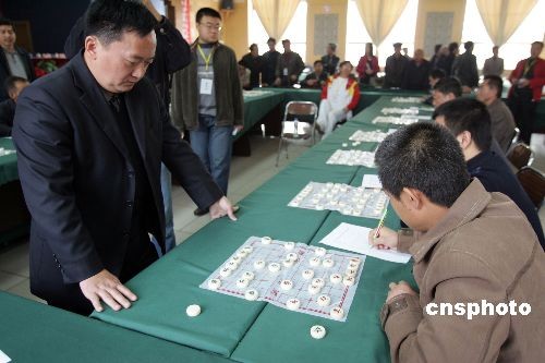 10月30日上午,第二十屆“紫林棋友杯”全國象棋大賽在山西省清徐縣舉行。來自北京、廣東、江西、吉林、內(nèi)蒙古、重慶、黑龍江、山西、火車頭、煤炭等二十多個(gè)省市區(qū)、行業(yè)體協(xié)的棋手一百二十名運(yùn)動(dòng)員參加賽事。中新社發(fā) 張?jiān)?攝