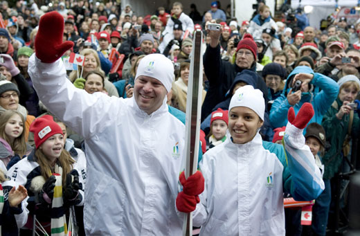 2月12日,加拿大溫哥華2010年冬奧會組委會在加西滑雪勝地惠斯勒正式公布了冬奧會火炬和火炬手服裝,從而拉開了冬奧會倒計時一周年慶;顒拥男蚰。