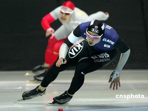 2月19日,世界大學(xué)生冬季運(yùn)動(dòng)會(huì)在結(jié)束女子首金爭(zhēng)奪后,男子500米速度滑冰的比賽也產(chǎn)生了金牌。韓國選手選手李康爽以兩輪69秒82的成績(jī)問鼎冠軍,為韓國隊(duì)再添一金。中國隊(duì)賽前對(duì)金牌志在必得的于鳳桐落后0.05秒,屈居亞軍,銅牌則最終歸屬于韓國選手毛太范,成績(jī)?yōu)?0秒53。中新社發(fā) 富田 攝