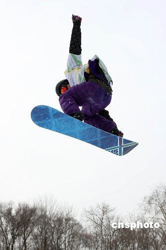 2月24日中午,在黑龍江哈爾濱舉行的大冬會比賽上,我國選手曾小燁、史萬成和徐德超在男子單板滑雪U池的預(yù)賽中順利過關(guān),進入了決賽。中新社發(fā) 王韶驊 攝