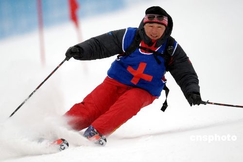 2月24日,在大冬會(huì)亞布力滑雪場(chǎng)高山滑雪大回轉(zhuǎn)比賽中,大冬會(huì)醫(yī)療救護(hù)隊(duì)隨時(shí)出擊。圖為醫(yī)療救護(hù)隊(duì)馳騁在雪道上。中新社發(fā) 姚庭山 攝