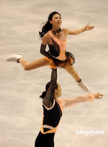當(dāng)?shù)貢r間3月24日晚,2009年花樣滑冰世界錦標(biāo)賽在洛杉磯正式開幕。在當(dāng)天晚上舉行的雙人滑短節(jié)目比賽中,中國選手、2006年世錦賽冠軍龐清和佟健得到65.18分,排名第五。衛(wèi)冕冠軍德國組合薩維琴科和索爾科維名列第一。25日晚將舉行雙人自由滑比賽,根據(jù)兩項(xiàng)總成績決出名次。圖為龐清和佟健在比賽中。中新社發(fā) 張煒 攝