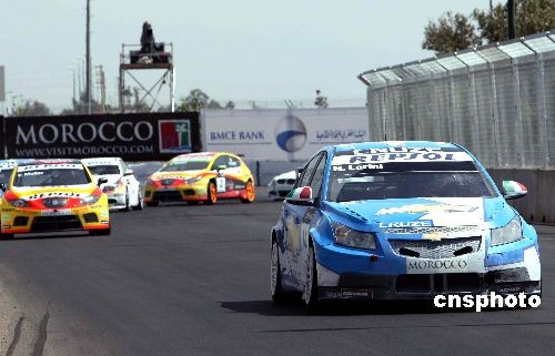 在5月3日進(jìn)行的2009世界房車錦標(biāo)賽(WTCC)第三站——摩洛哥馬拉喀什(Marrakech)站中,雪佛蘭車隊展現(xiàn)出非凡的實力。車手羅伯·胡夫(Rob Huff)和尼科拉·拉里尼(Nicola Larini)駕駛的雪佛蘭科魯茲力壓群雄分別贏得了第一和第二回合比賽勝利,從而使雪佛蘭車隊首次包攬兩回合比賽的冠軍,完成了歷史性的突破。圖為尼科拉·拉里尼在比賽中。中新社發(fā) 趙振清 攝