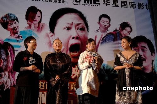 | 香港導演許鞍華的新片《姨媽的后現(xiàn)代生活》3月5日晚在北京華星國際影城舉行首映式,給三八婦女節(jié)帶來一部應景、溫情的電影。當晚,導演許鞍華,編劇李檣,演員斯琴高娃、趙薇、史可出席首映式!兑虌尩暮蟋F(xiàn)代生活》由周潤發(fā)、斯琴高娃聯(lián)袂主演。影片講述年過半百的葉姨媽,在時代的大潮中無所適從,經(jīng)歷了瘋狂的黃昏戀,破滅了發(fā)財夢,最后黯然離開繁華都市,回到東北老家,重新品嘗清貧、本色的人生況味。雖然制作成本不高,但因故事精彩,影片同樣吸引了眾多明星加盟,如盧燕、史可等。首映式前,在香港、北京、上海等地的看片會上,此片獲得一致好評。中新社發(fā) 王利 攝