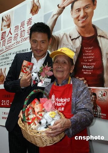 二月二十一日,“愛心曲奇大使”張學(xué)友在香港出席伸手助人協(xié)會(huì)舉行的義賣活動(dòng),為協(xié)會(huì)旗下的長者院舍籌集善款。中新社發(fā) 武仲林 攝