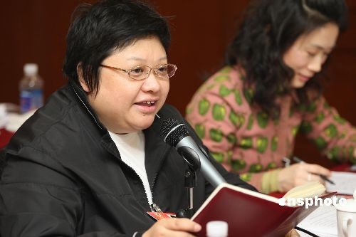 3月4日,全國政協(xié)十一屆二次會議進行分組討論。韓紅在青聯(lián)界小組討論上發(fā)言。中新社發(fā) 傅丹丹 攝