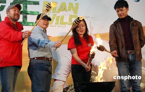 3月18日,Discovery探索頻道在北京推出全球觀眾狂熱追捧的系列探險節(jié)目《荒野求生》(Man VS Wild)播映儀式,將給中國地區(qū)觀眾帶來終極野外生存指南,同時舉行中國特輯《荒野求生》啟動儀式,《荒野求生》節(jié)目主持人兼探險家貝爾吉羅斯亦將8月來中國,首次拍攝《荒野求生》中國特別專輯。《荒野求生》中國特輯將于2010年2月與中國電視觀眾見面,并將在Discovery探索頻道全球電視網(wǎng)播出。電視劇《我的團長我的團》主演段奕宏亮相中國特輯《荒野求生》啟動儀式。中新社發(fā) 錢興強 攝