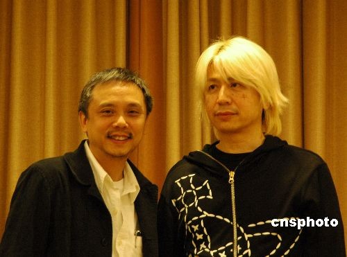 3月20日上午,中國香港導演陳嘉上與日本音樂人藤原育郎一起出席沖繩國際電影節(jié)為其舉辦的記者見面會。藤原育郎是日本吉本興業(yè)公司旗下的著名日本音樂家、鋼琴家、指揮家,音樂制作人,曾為大量的電影、電視劇、動畫片、游戲完成音樂的工作。陳嘉上稱贊其為電影《畫皮》創(chuàng)作的音樂凄美感人,非常恰當?shù)貍鬟f了電影主人公的感情。中新社發(fā) 關(guān)妍 攝