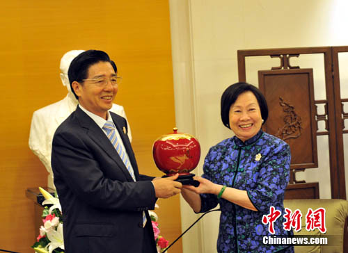 中新網(wǎng)臺北7月1日電 (記者 蔣雪林 黃少華)已故海基會董事長辜振甫遺孀辜嚴(yán)倬云1日在會見到訪的廣西書記郭聲琨時說,兩岸簽署ECFA,將使兩岸的前途非常光明。