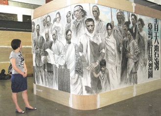 據(jù)報道,這幅抗日巨畫,由五十多名大陸畫家、歷史學(xué)家花了五年半時間集體創(chuàng)作八年抗戰(zhàn)的故事,按真人比例實錄一千多名歷史人物,期間畫家歐治渝甚至用眼過度差點(diǎn)失明。巨畫按真人比例實錄一千多名歷史人物,畫卷高二米,總長逾八百米,相當(dāng)于小學(xué)操場繞四圈,展場橫跨臺北中山紀(jì)念館內(nèi)外,堪稱“史上最高難度”。