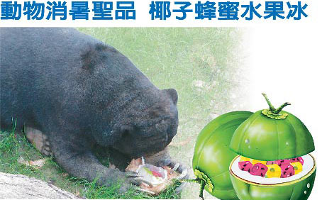 “我們看到南臺(tái)灣有很多椰子,想到利用椰子殼制成水果冰,給動(dòng)物消暑”,突發(fā)奇想的動(dòng)物園管理中心主任張博宇說(shuō),椰子殼里裝蜂蜜水及水果,冰凍后就成為可口冰品,動(dòng)物聞到蜂蜜味道,邊舔邊剝開(kāi)椰子,吃里面的水果和椰子肉。