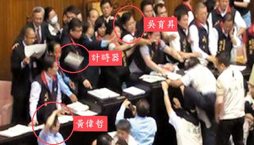 國民黨“立委”洪秀柱、郭素春等昨日出面聲援吳育升,并拿出當天的“兇器”秤重。洪秀柱指出,“立法院”的計時器有一點一公斤重,與一頭磚塊的重量差不多;痛批民進黨團是暴力團,更指責黃偉哲平時總是說自己“跟民進黨的其它人不一樣”,現(xiàn)在卻在傷人之后不敢認,直到有影片佐證后才說要道歉。