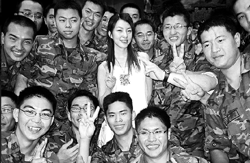 下部隊(duì)后我發(fā)現(xiàn)了軍中的一個(gè)怪現(xiàn)象:當(dāng)兵當(dāng)三年,母豬賽貂蟬。有位朋友曾說(shuō):“國(guó)中時(shí)代號(hào)稱‘少男殺手’的蔡依林,我那時(shí)對(duì)她實(shí)在沒(méi)啥興趣,也實(shí)在不太懂她哪里好看,一張厚唇嘴就零分了。〉沁@個(gè)想法到我當(dāng)兵后卻慢慢改觀,可見(jiàn)當(dāng)兵對(duì)一個(gè)男人的改變有多大……”