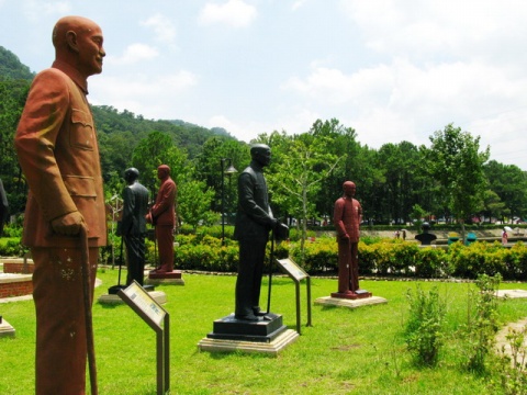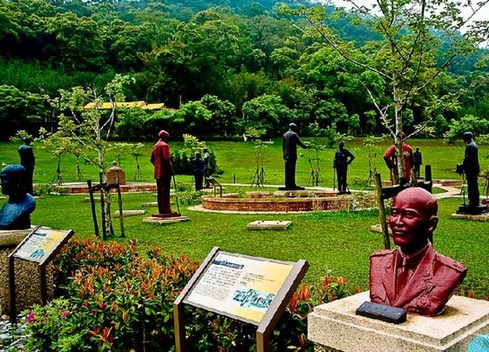 教授告訴我,這個雕像群落多達兩百余座蔣介石雕像,因上世紀(jì)90年代后期“去蔣化”運動,各地矗立的銅像紛紛拆除,面臨回爐煉銅的命運。慈湖所在的桃園縣當(dāng)時正值“藍營”執(zhí)政,于是將各地拆除的銅像收來,選出其中藝術(shù)水準(zhǔn)較高者,建成雕塑群。