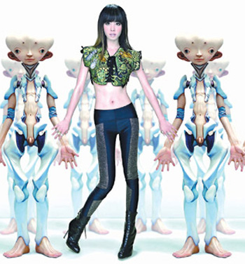 曾為LV設(shè)計暢銷包款的村上隆,這次與時尚雜志跨界合作,蔡依林拍攝封面時悠游于村上隆的“立體球”、“迷彩風(fēng)”與“未來機器人”作品,宛如現(xiàn)代版走進(jìn)奇幻世界的艾麗斯,視覺效果非常出色。