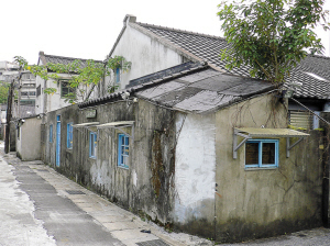 一位旁邊的住戶告訴記者,眼前的四四南村,就是由兵工廠的員工及眷戶們居住的區(qū)域,原地曾是日軍陸軍庫房。整體建筑為“魚骨狀”架構,依然保持著當年的樣貌,窄窄的過道,低矮的屋頂,灰黑色的磚墻,狹小的居住面積。據統(tǒng)計,四四南村原計劃在1999年隨眷村改建政策拆除,但在1991年3月,被臺北市政府列為“歷史建筑物”,并在1993年10月,改為信義區(qū)公民會館,將眷村內的生活用博物館的方式展出,并提供市民租借為展覽活動場地。原建物并未變動,連圍墻也都還保留著。