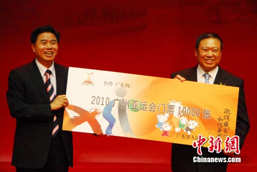 中新社臺北8月17日電 (記者 張傳熙)“臺灣•廣東周”開幕式17日上午在臺北國際會議中心舉行。臺灣政要及工商界知名人士,包括吳伯雄、江丙坤、王志綱、郭山輝等出席開幕儀式。廣東省省長黃華華在儀式上向臺灣有關(guān)方面贈送亞運(yùn)會門票。