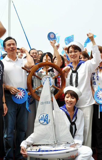 綜合臺灣“今日新聞網(wǎng)”報道,黃昭順與愛女、“正妹醫(yī)生”陳菁徽20日分著水手裝在高雄港香蕉碼頭舉行“CI發(fā)表”暨 “起灶大高雄都”啟動記者會, 公布競選LOGO。