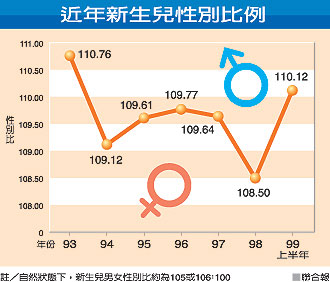 此外,除了高齡產(chǎn)婦產(chǎn)下男嬰機(jī)率較高,從“健康局”分析來看,第三胎起,男女嬰比也嚴(yán)重失衡,甚至達(dá)120多比100。李茂盛說,島內(nèi)每年透過人工生殖產(chǎn)下的嬰兒約2000多名,不可能因此造成性別比例失衡,“不孕的人通常只求生得出來,不見得會挑性別”。