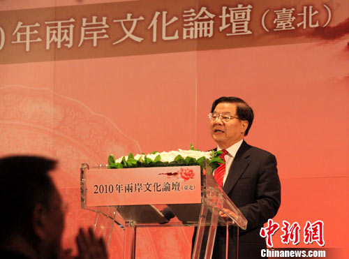 蔡武表示,將秉持中華文化一脈相承的品格,愿以更加開放、務(wù)實(shí)的態(tài)度,創(chuàng)造性地開展工作,努力構(gòu)建兩岸文化交流平臺(tái),全方位推動(dòng)兩岸文化交流與合作。