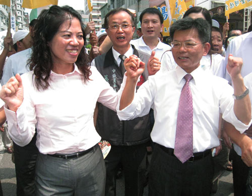 楊秋興與大批支持者緩步走進“選委會”完成登記手續(xù),正式確定大高雄市長選盤的三強鼎立局面。