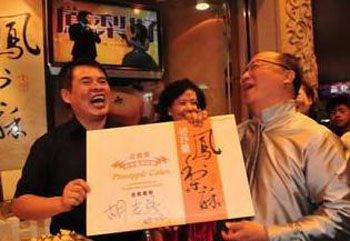 胡志強(qiáng)說,她的太太邵曉鈴就讀大甲鎮(zhèn)東陽小學(xué),所以他也是大甲的女婿,今年裕珍馨參加2010菠蘿好酥獲獎(jiǎng)后,他也因而認(rèn)識了裕珍馨老板陳裕賢,知道他很用心制作,制作過程也很衛(wèi)生,所以主動(dòng)要求為裕珍馨的產(chǎn)品代言,希望把好產(chǎn)品推銷給全世界的消費(fèi)者。