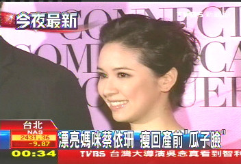 中新網(wǎng)10月15日電 據(jù)臺(tái)灣TVBS報(bào)道,14日晚間,臺(tái)灣一項(xiàng)乳癌防治公益活動(dòng)吸引不少漂亮媽咪站臺(tái),正在準(zhǔn)備演唱會(huì)的歌手張清芳,以及為連家生下第二個(gè)寶寶的蔡依珊,都是亮麗現(xiàn)身。蔡依珊一出現(xiàn),鎂光燈閃個(gè)不亮,因?yàn)椴?星期時(shí)間,很明顯的又瘦了一圈。