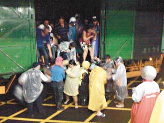昨晚在距離南方澳十四公里處,近20輛大巴、中巴、貨車(chē)全困在一塊“取暖”,等待救援。